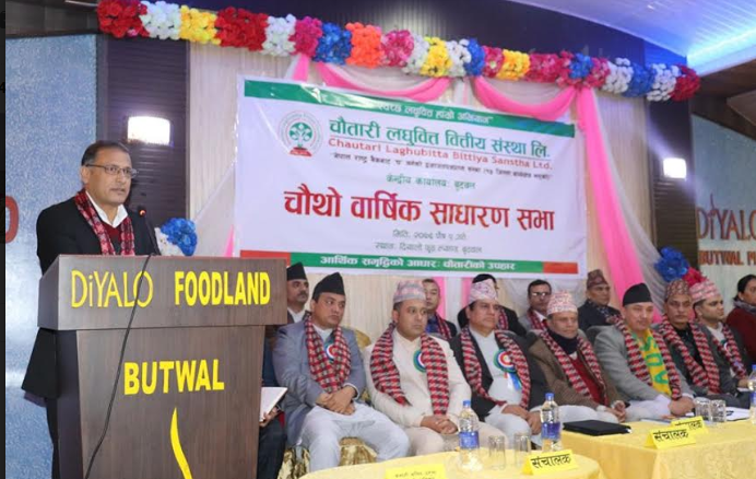 चौतारी लघुवित्त वित्तीय संस्थाका अध्यक्ष श्री जगत वहादुर पोख्रेलको अध्यतामा सम्पन्न भएको उक्त साधारण सभामा वित्तीय संस्थाका नायव कार्यकारी अधिकृत हरिकृष्ण जोशीले स्थपनाकाल देखी ०७५।०७६ सम्मको अन्त्य सम्ममा वित्तीय संस्थाले गरेको प्रगति विवरण साथै मर्ज गर्न लागेको आरम्भ लघुवित्तको वित्तीय संस्थाको कार्य क्षेत्र साथै प्रगति विवरण पेश गरेका थिए ।