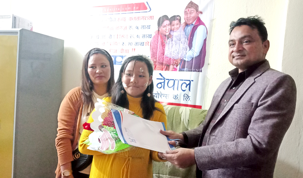 कम्पनीका सहायक महाप्रबन्धक पुरीले बीमित बालिकालाई जन्मदिनको अवसरमा बिमा पोलिसी हस्तान्तरण गरेको कम्पनीले जनाएको छ । सो बीमा पोलिसी हस्तान्तरण कार्यक्रममा भरतपुर उपशाखाका प्रमुख रविन्द्र अधिकारी, अभिभावक, आफन्त र कम्पनीका कर्मचारीहरुको उपस्थितिमा थियो ।