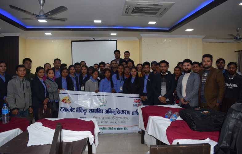लघुवित्तले सक्षम वित्तीय पहुँच परियोजना संगको सहकार्यमा ट्याब्लेट बैंकिङ्ग सेवा सुचारु गर्नका लागि परियोजना जिल्ला अन्र्तगतका रुपन्देही, कपिलबस्तु र दाङ्ग जिल्लाका १० वटा शाखा कार्यालयमा कार्यरत ४६ जना कर्मचारीहरुलाई ट्याब्लेट बैंकिङ्ग सेवासंग सम्बन्धि तालिम दिएको हो ।