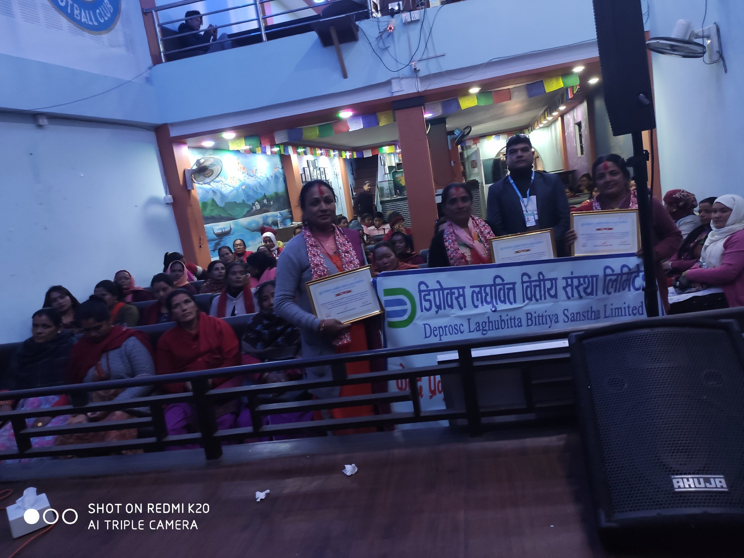 उक्त कर्यक्रममा समुहमा आबद्ध ५८ भन्दा बढि महिला सदस्यहरुको सहभागिता रहेको कार्यक्रममा आ.ब. २०७५/०७६ मा उत्कृष्ठ भएका तिन वटा केन्द्र हरुलाई नगद सहित प्रमाणपत्र द्धारा सम्मान गरिएको थियो भने समुहमा आबद्ध सदस्यका छोरा/छोरी मध्ये २०७५ सालको एस.ई.ई.मा सबै भन्दा धेरै ग्रेड ल्यउने ब्यक्तिलाई नगद सहित प्रमाणपत्र द्धारा सम्मान गरिएको थियो ।