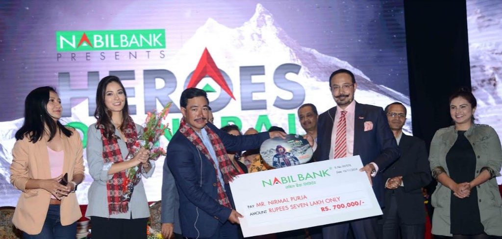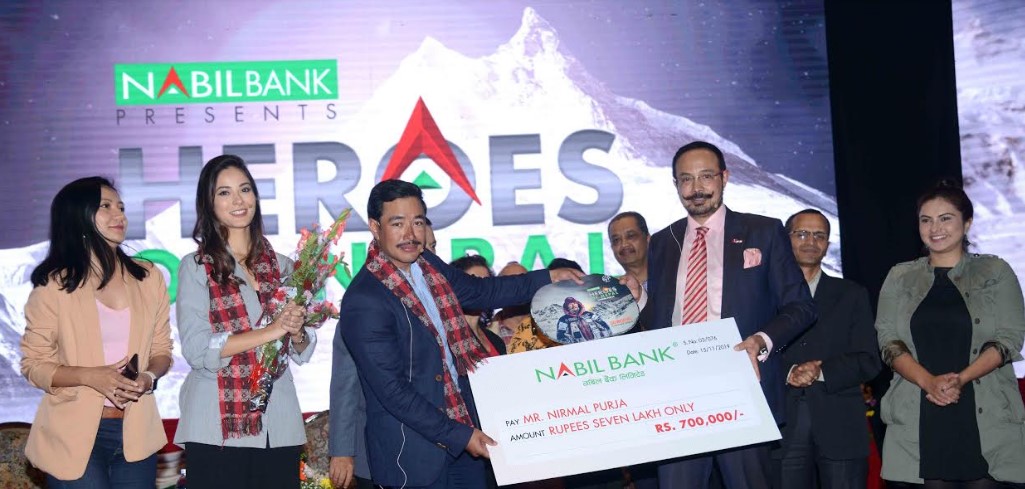 काठमाडौं । नबिल बैंकको हिरो अफ नेपाल सिरिजमा निर्मल पूर्जा छानिएका छन् । पूर्जाले सात महिनामा ८ हजार मिटरभन्दा अग्ला १४ वटा हिमाल आरोहण गरेर विश्व किर्तिमान कामय गरेका थिए । त्यसैले उनलाई बैंकले हिरो उपाधी दिएको हो। यो सँगै प्रोत्साहनस्वरुप उनलाई ७ लाख रुपैयाँ समेत प्रादन गरिएको छ।