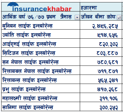१० नयाँ जीवन बीमा कम्पनीहरुमध्ये युनियन लाइफ इन्स्योरेन्स कम्पनी लिमिटेडको जीवन बीमा कोष एकदमै बलियो छ। कोषमा अहिले २ अर्ब ४९ करोड रुपैयाँ रहेको छ। त्यस्तै सानिमा लाइफ इन्स्योरेन्सको जीवन बीमा कोष सबैभन्दा थोरै छ।सानिमा लाइफ इन्स्योरेन्सको जीवन बीमा कोषमा अहिले ३० करोड २ लाख रुपैयाँ छ। जीवन बीमा कम्पनीहरुको हकमा जीवन बीमा कोषलाई एकदमै महत्तोका साथ हेरिन्छ।