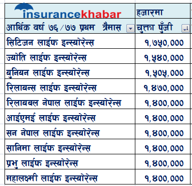 १० नयाँ जीवन बीमा कम्पनीहरुमध्ये सिटिजन लाइफ इन्स्योरेन्सको चुक्ता पूँजी सबै भन्दा धेरै छ। सिटिजन लाइफको चुक्ता पूँजी १ अर्ब ७५ करोड रहेको छ। बीमा समितिले जीवन बीमा कम्पनीहरुलाई २ अर्ब पुँजीको लक्ष्य दिएकोमा अब सबै १० नयाँ जीवन बीमा कम्पनीहरुले आईपिओ मार्फत पुँजी वृद्धि गर्दै सो लक्ष्य हासिल गर्ने छन्।