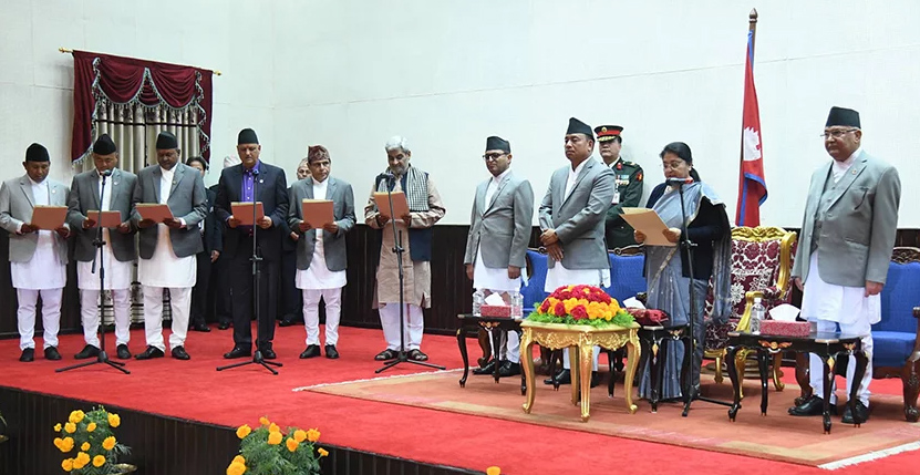 काठमाडौं । बुधबार राति अवेर नियुक्त भएका मन्त्रीहरूले बिहिवार विहान पद तथा गोपनीयताको शपथ लिएका छन् ।
