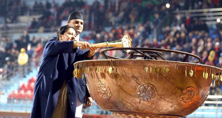 काठमाडौं । नेपाल भ्रमण वर्ष २०२० को राष्ट्रपति विद्यादेवी भण्डारीले एक समारोहबीच औपचारिक रुपमा आज उद्घाटन गरेकी छिन् । दशरथ रंगशालामा आयोजित भव्य कार्यक्रमका बीचमा राष्ट्रपति भण्डारीले दीप प्रज्वलन गर्दै नेपाल भ्रमण वर्षको औपचारिक उद्घाटन गरेकी हुन् ।