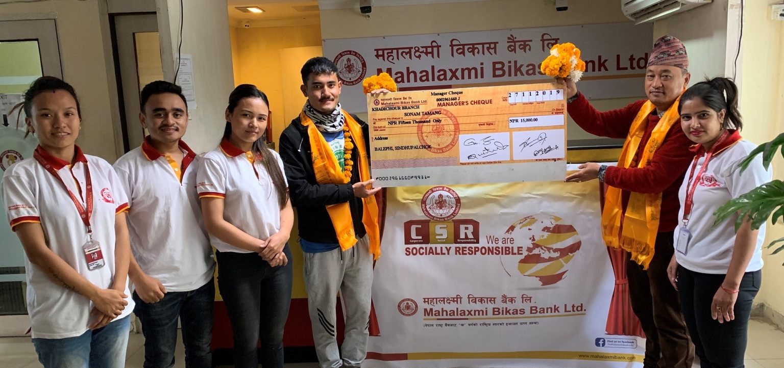 काठमाडौ । महालक्ष्मी विकास बैंकको खाडीचौर शाखाले सोनाम तामाङलाई पन्ध्र हजार रुपैँया सहित सम्मान गरेको छ । बैंकले आफ्नो संस्थागत सामाजिक उत्तरदायित्व अन्तर्गत विभिन्न शाखाहरुबाट विभिन्न कार्यक्रमहरु गर्दै आइरहेको छ ।