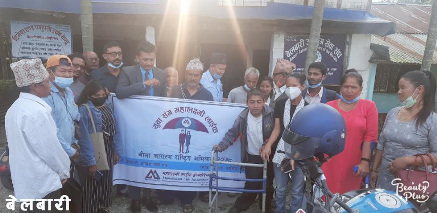 काठमाडौं । महालक्ष्मी लाईफ इन्स्योरेन्स लिमिटेडले कार्तिक १५ गते एकै दिन विभिन्न तिन स्थानमा युवा संग महालक्ष्मी लाईफ, बीमा जागरण कार्यक्रम संचालन गरेको छ । मोरङको बेलबारी स्थित बेलबारी अपांग सेवा संघ मोरङको भवनमा संचालित कार्यक्रममा २३ जना अपांङ युवा हरुको सहभागिता रहेको थियो । अपाङ सेवा संघका अध्यक्ष भोज बहादुर भुजेलको अध्यक्षतामा सम्पन्न कार्यक्रममा एजेन्सी मेनेजर तथा बीमा जागरण अभियानका केन्द्रिय सदस्य सरोज पौडेल, एजेन्सी मेनेजर तथा जिल्ला संयोजक खड्ग नारायण उरावले बीमा जागरणको महत्व बारेमा मन्तव्य राखेका थिए । कम्पनीका उपक्षेत्रिय प्रमुख हिरा निरौलाले तालिम दिनु भएको थियो । कार्यक्रममा नेत्रहिन संघ मोरङका कोषाध्यक्ष संतोष कुमार पंडित तथा शारिरिक अपांग संघ मोरङका उपाध्यक्ष दिनेश कोइरालाको समेत उपस्थिति रहेको थियो ।