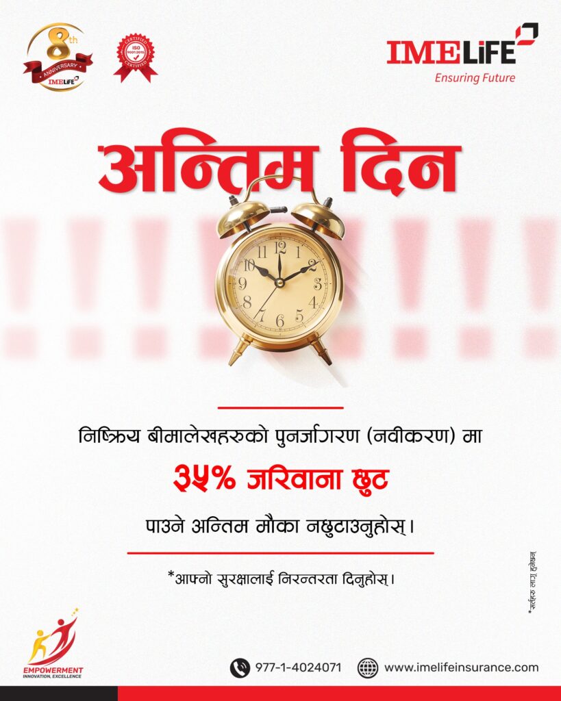 गत भदौ १७ गते नेपाल बीमा प्राधिकरणले कम्पनीको आर्थिक वर्ष २०७०।७१ देखि आर्थिक वर्ष २०७२।७३ सम्मको इनफोर्स पोलिसिज कायम गरेको जम्मा बीमालेख संख्या १ लाख ५२ हजार ८९० को आर्थिक स्थितिको लेखाजोखा र दायित्व मूल्यांकनसम्बन्धी बीमांकीय मूल्यांकन प्रतिवेदन स्वीकृत गरेको थियो।