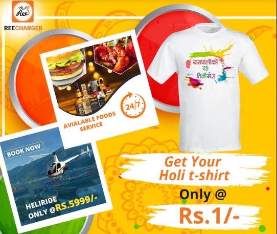 काठमाडौं । मोबाइल एप रिचार्जरले होलीको अवसर पारेर रिचार्जरले १ रुपैयाँमा होलीको टीसर्ट उपलब्ध गराउने भएको छ।रङहरुको पर्व होलीलाई हर्षोउल्सास बनाउनुका साथै आफ्नो ब्राण्ड प्रवद्र्धनका लागि होलीको थिमयुक्त टीसर्ट १ रुपैयाँमा उपलब्ध गराउने अफर ल्याएको रिचार्जरले जनाएको छ ।