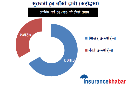 शिखर इन्स्योरेन्सले ८० करोड ९२ लाख बराबरको दावी भुक्तानी गर्न बाँकी छ भने नेको इन्स्योरेन्सको ४० करोड ३७ लाख बराबरको दावी भुक्तानी गर्न बाँकी छ।