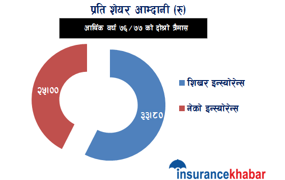 शिखर इन्स्योरेन्सको प्रति शेयर आम्दानी ३३ रुपैयाँ ८० पैसा छ भने नेको इन्स्योरेन्सको प्रति शेयर आम्दानी २५ रुपैयाँ छ। प्रति शेयर आम्दानीलाई वार्शिकरण गरिएको छ।