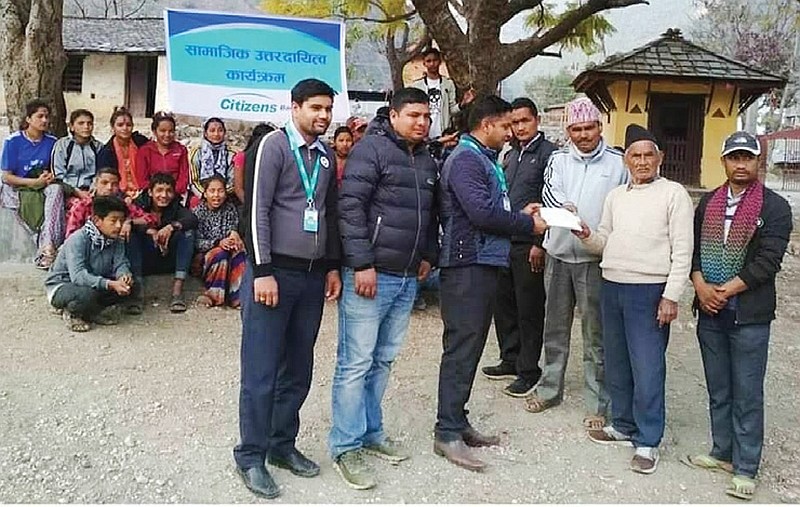 काठमाडौ । सिटिजन्स बैंक इन्टरनेशनलले जाजरकोटकोे नलगाड नगरपालिका–७ स्थित श्री त्रिभुवन माध्यमिक विद्यालयलाई आर्थिक सहयोग गरेको छ । बैंकले मंगलवार एक कार्यक्रमबीच विद्यालयलाई १ लाख रुपैयाँ सहयोग गरेको हो ।