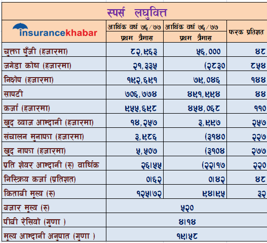 स्पर्श लघुवित्तले चालु आर्थिक वर्षको प्रथम त्रैमासको वित्तिय विवरण सार्वजनिक गरेको छ। गत वर्ष नोक्सानीमा भएको कम्पनी अहिले भने नाफामा आउँन सफल भएको छ।