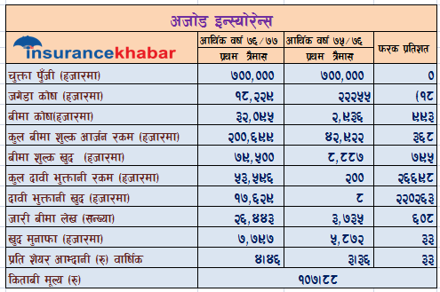 अजोडको कुल बीमा शुल्क आर्जन २० करोडमाथि, अन्य वित्तीय सूचकको अवस्था कस्तो ?