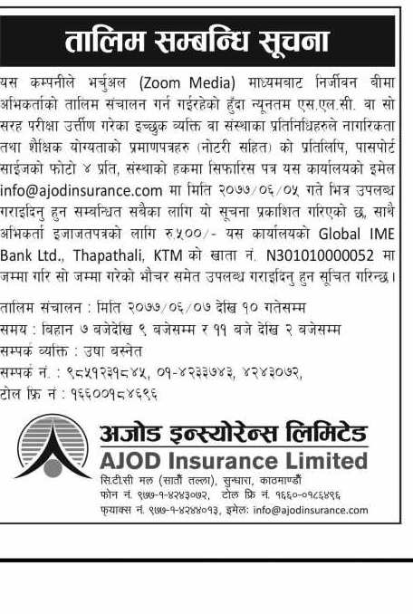 कम्पनीले एक सूचना जारी गर्दै तालिम संचालन हुन लागेको जानकारी गराएको हो । तालिम सहभागी हुन कम्तिमा एसएलसी उतीर्ण हुनपर्ने कम्पनीले जनाएको छ ।
