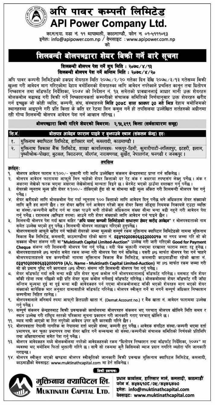 अपि पावरले साउन १३ गतेबाट अवितरित हकप्रद शेयर लिलामीमा विक्री गर्ने