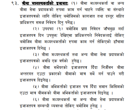 हरेक वर्ष चैतमा नविकरण गर्नै पर्ने व्यवस्था थियो । यदि ६ महिना भित्रमा नविकरण नगरेमा लाइसेन्स नै रद्द हुने व्यवस्था थियो । अव तीन वर्षसम्म नविकरण नगर्दा पनि लाइसेन्स रद्द हुने छैन । अभिकर्ताले तीन वर्ष सम्मम पनि नविकरण नगर्दा केहि फरक पर्दैन । तर यसै दफाको उपदफा ६ मा बीमा मध्यस्थकर्ता वा अन्य बीमा सेवा प्रदायकको इजाजतपत्र सम्बन्धी व्यवस्था तोकिए बमोजिम हुनेछ भनिएको छ । यो भनेको ऐनमा नविकरणको अवधि तीन वर्ष भनिएता पनि नविकरण शुल्क बुझाउने तथा यस सँग सम्बन्धित व्यवस्थाहरु बीमा समितिले आफु अनुकुल कायम गर्न भने सक्नेछ । नविकरण अवधि तीन वर्षको भए पनि नविकरण शुल्क भने हरेक वर्ष लिने जस्ता व्यवस्था लगाउन सक्नेछ ।
