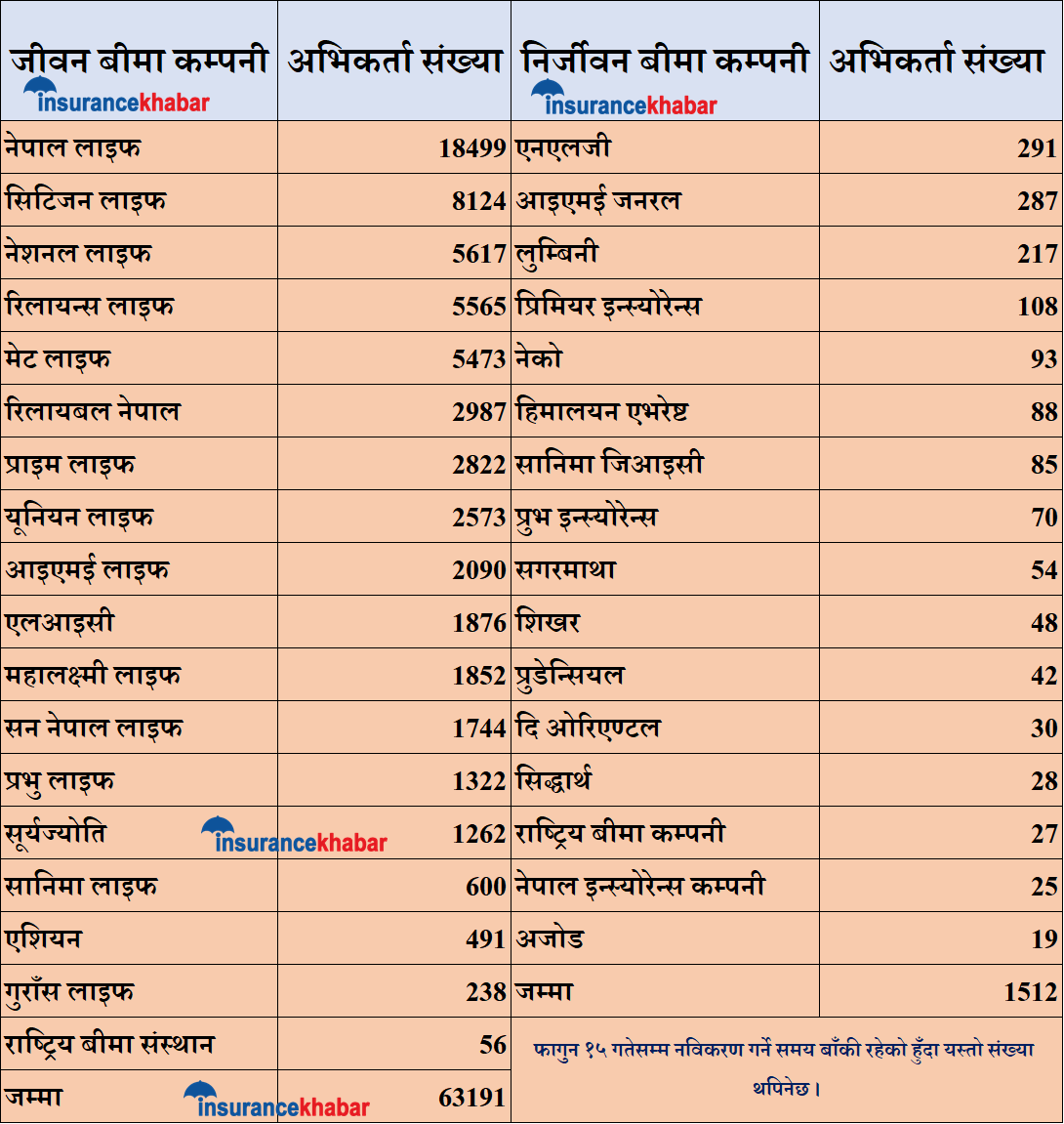 जीवन तथा निर्जीवन बीमा कम्पनीले अध्यावधिक गरेका अभिकर्ताको विवरण