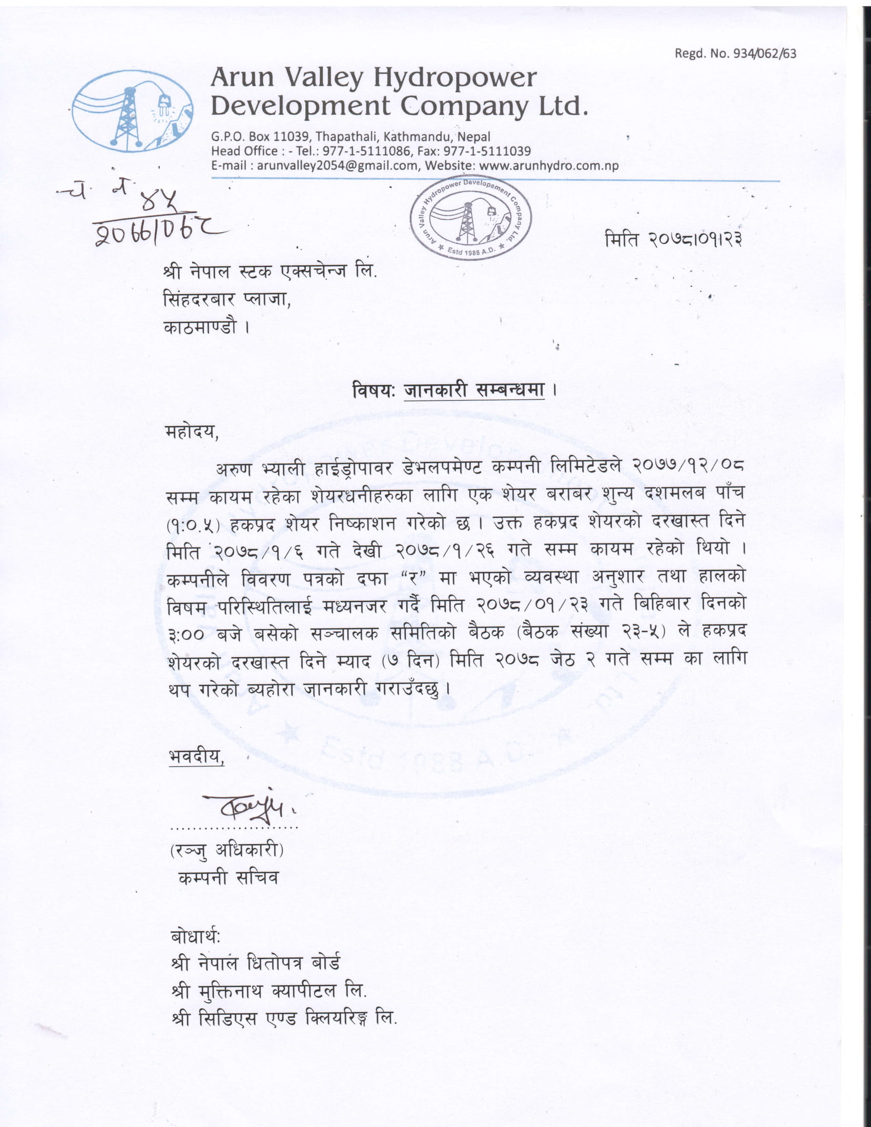 अरुण भ्याली हाइड्रोपावरको हकप्रद शेयरमा आवेदन दिने समय थपियो