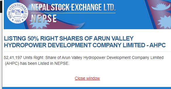 अरुण भ्याली हाइड्रोपावरको हकप्रद शेयर सुचिकृत