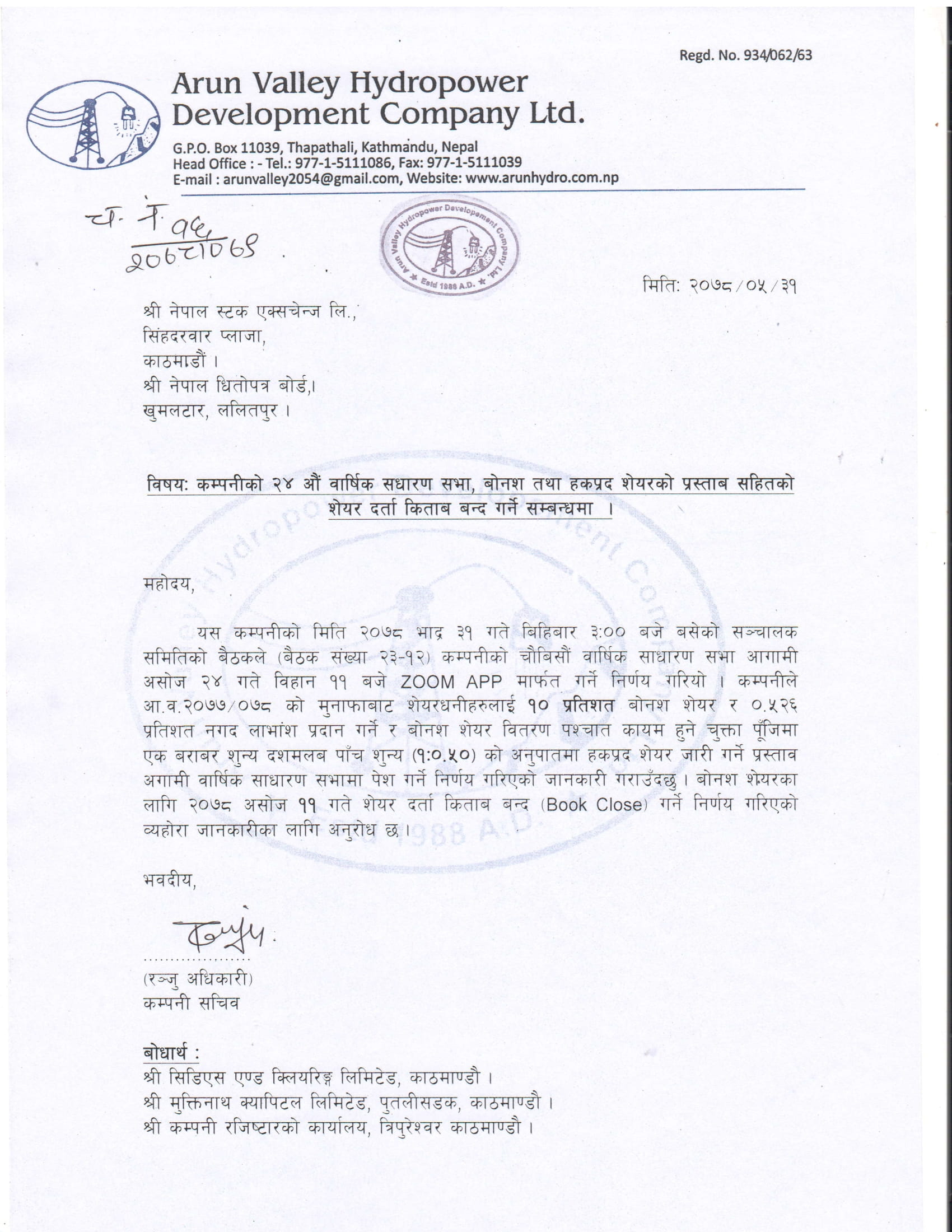 त्यसैगरी, कम्पनीले बोनश शेयर वितरण गरेपश्चात् कायम हुने चुक्ता पुँजीको १ः०.५० अर्थात् ५० प्रतिशत हकप्रद शेयर निष्काशन गर्ने घोषणा पनि गरेको छ ।