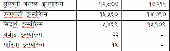 नयाँ कम्पनीहरुमध्ये अजोड इन्स्योरेन्सले ३३ वटा र सानिमा इन्स्योरेन्स कम्पनीले १५ वटा बिमालेख जारी गरेको छ ।
