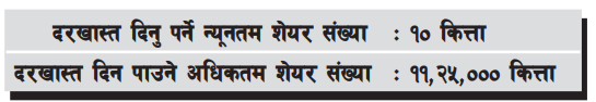 न्युनतम १० कित्ता देखि अधिकतम ११ लाख २५ हजार कित्तासम्म आवेदन दिन सकिन्छ ।