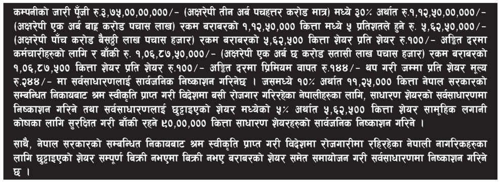 चुक्ता पुँजी : ३ अर्ब ७५ करोड (आईपीओ पछि )