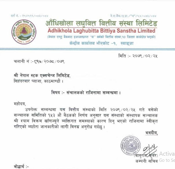 आँधिखोला लघुवित्तका सञ्चालक खाँणको राजीनामा स्वीकृत