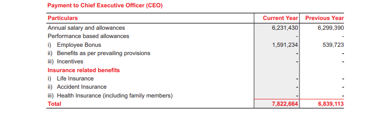 उच्च व्यवस्थापन तहमा रहेका कर्मचारीको लागि भने एक करोड ३२ लाख रुपैयाँ खर्च भएको छ । लेखापरीक्षण प्रतिवेदन अनुसार गत आर्थिक वर्षमा १८ करोड ३५ लाख रुपैयाँ मुनाफा भएको छ । यस आधारमा प्रतिशेयर आम्दानी १५ रुपैयाँ पर्न जान्छ । कम्पनीको अघिल्लो आर्थिक वर्षको तुलनामा मुनाफा भने घटेको छ । अघिल्लो आर्थिक वर्षमा २० करोड ९७ लाख रुपैयाँ थियो ।