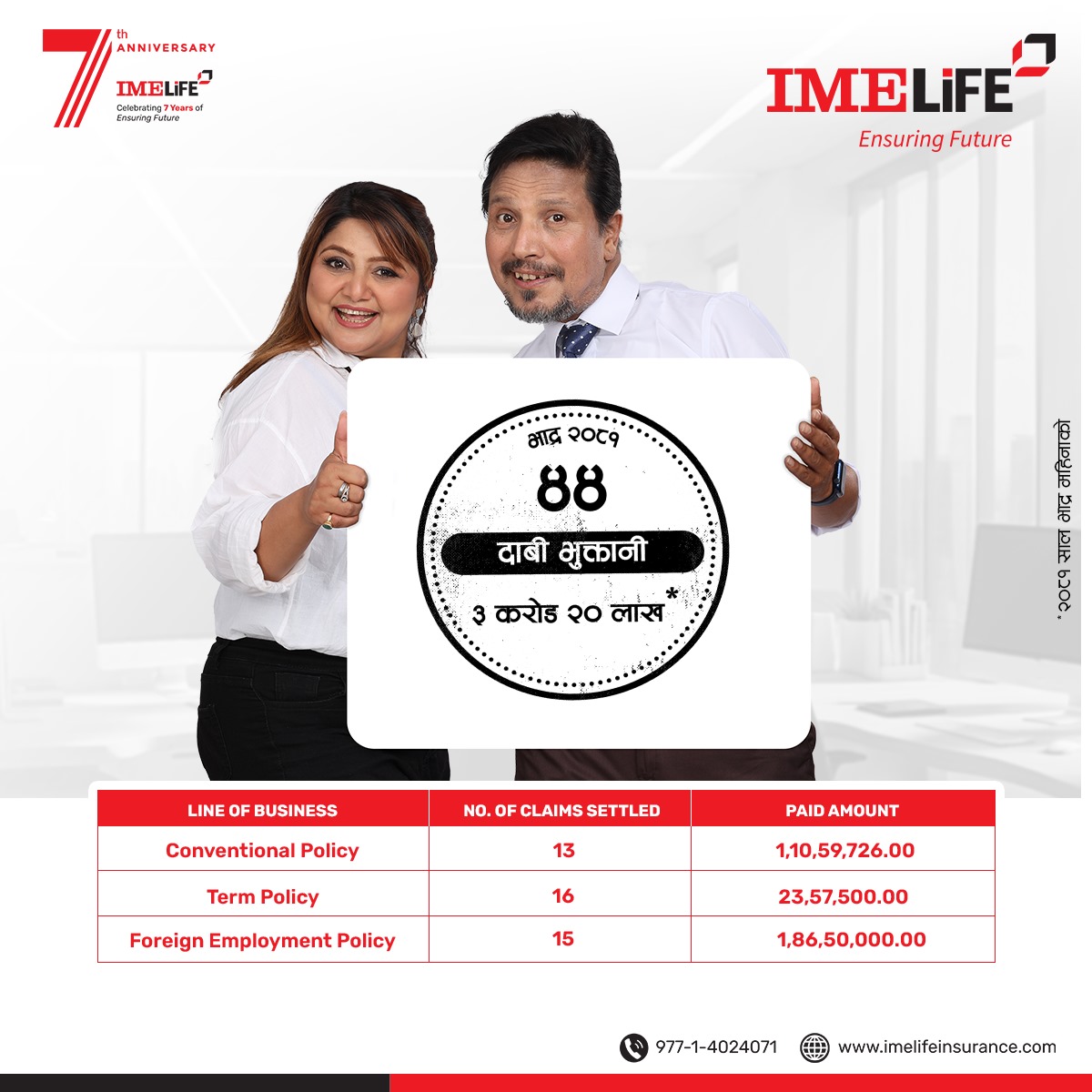 आइएमई लाइफले एक महिनामै भुक्तानी गर्‍यो ३ करोड २० लाख रुपैयाँ दाबी