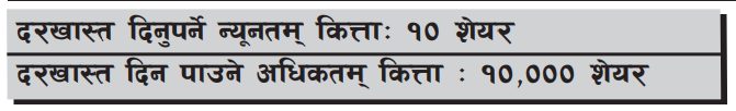 न्युनतम १० कित्ता देखि अधिकतम १० हजार कित्ता सम्म आवेदन दिन सकिन्छ ।