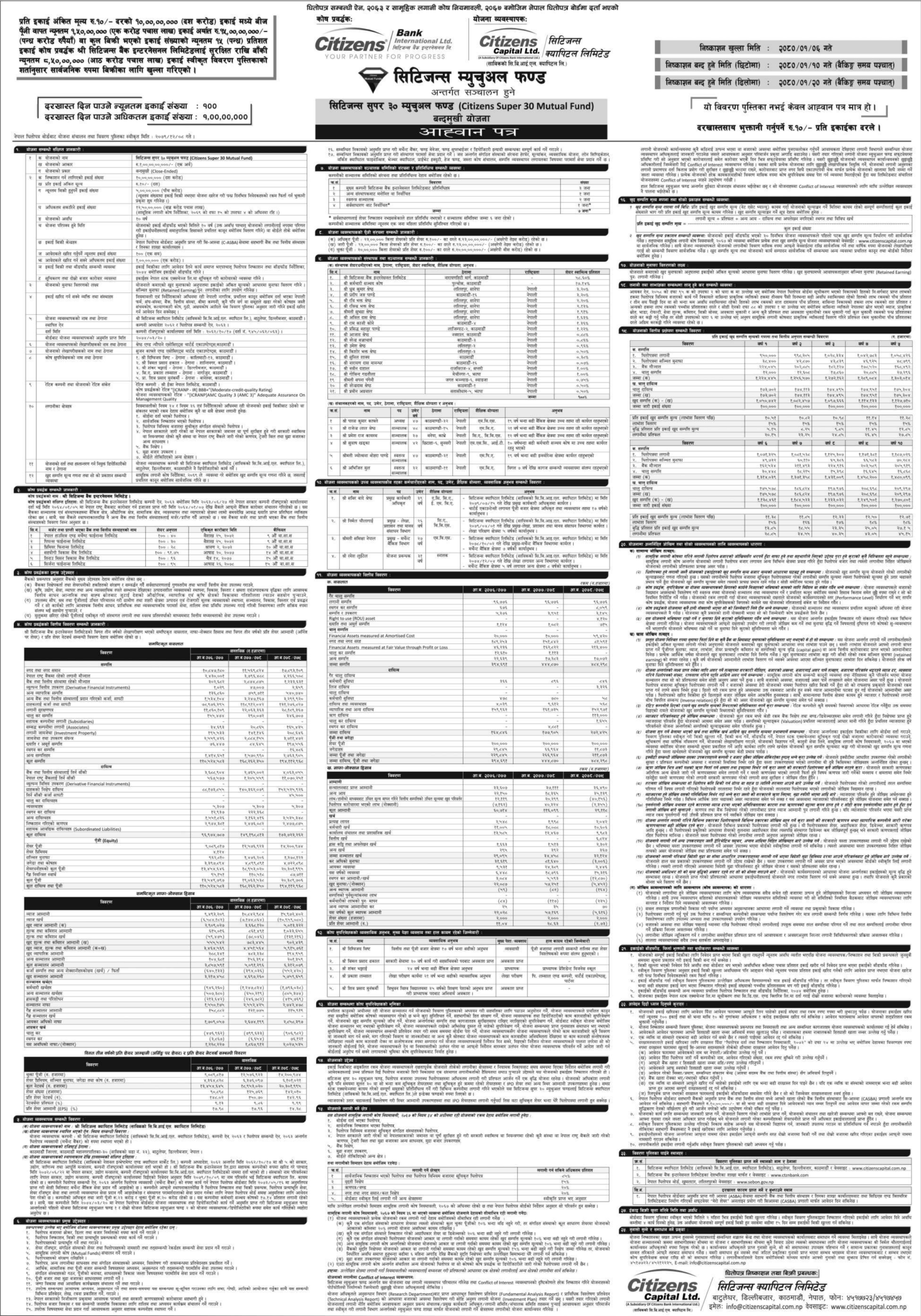 आजदेखि सिटिजन्स सुपर ३० म्युचुअल फण्डको इकाई विक्री खुला