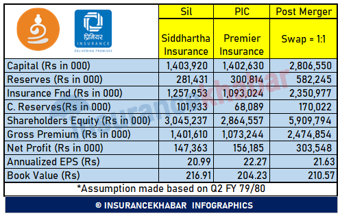 प्रिमियर इन्स्योरेन्सको वार्षिक प्रति शेयर आम्दानी २२ रुपैयाँ २७ पैसा छ भने सिद्धार्थ इन्स्योरेन्सको वार्षिक प्रति शेयर आम्दानी २० रुपैयाँ ९९ पैसा छ । मर्जर पश्चात दुई कम्पनीको वार्षिक प्रति शेयर आम्दानी २१ रुपैयाँ ६३ पैसा हुन्छ ।