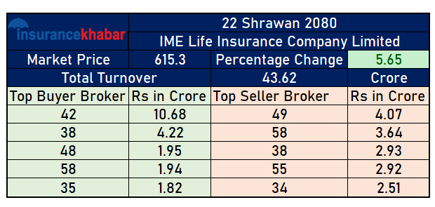 त्यस्तै विक्री तर्फ ४९ नम्बर ब्रोकरबाट ४ करोड ७ लाख र दोश्रोमा ५८ नम्बर ब्रोकरबाट ३ करोड ६४ लाखको शेयर विक्री भएको छ ।