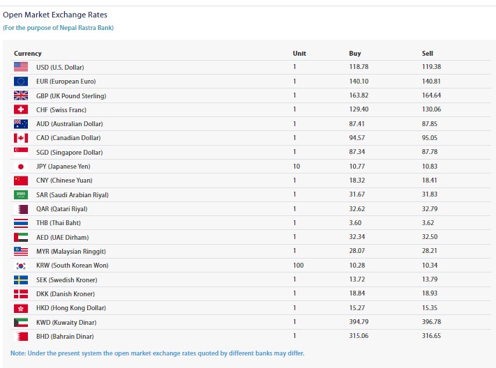 त्यस्तै, यूरोपियन यूरोको खरिददर १ सय ४० रुपैयाँ १० पैसा र विक्रिदर १ सय ४० रुपैयाँ ८१ पैसा रहेको छ । युरो पाउन्ड स्टिलिङको खरिददर १ सय ६३ रुपैयाँ ८२ पैसा र विक्रिदर १ सय ६४ रुपैयाँ ६४ पैसा रहेको नेपाल राष्ट्र बैंकले जनाएको छ ।