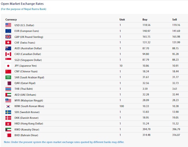 त्यस्तै, यूरोपियन यूरोको खरिददर १ सय ४० रुपैयाँ ९७ पैसा र विक्रिदर १ सय ४१ रुपैयाँ ६९ पैसा रहेको छ । युरो पाउन्ड स्टिलिङको खरिददर १ सय ६५ रुपैयाँ १५ पैसा र विक्रिदर १ सय ६५ रुपैयाँ ९८ पैसा रहेको नेपाल राष्ट्र बैंकले जनाएको छ ।