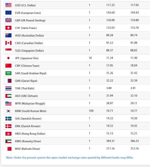 काठमाडौं । नेपाल राष्ट्र बैंकको अनुसार आज एक अमेरिकि डलरको खरिददर ११७ रुपैयाँ ३२ पैसा र बिक्रिदर ११७ रुपैयाँ ९२ पैसा रहेको छ ।त्यस्तै, यूरोपियन यूरोको खरिददर१ सय ४३ रुपैयाँ ६९ पैसा र बिक्रिदर १४४ रुपैयाँ ४३ पैसा रहेको छ।