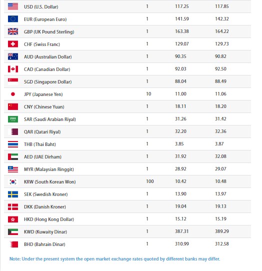 त्यस्तै, यूरोपियन यूरोको खरिददर १ सय ४१ रुपैयाँ ५९ पैसा र बिक्रिदर १४२ रुपैयाँ ३२ पैसा रहेको छ । यूको पाउन्ड स्टिलिङको खरिददर १ सय ६३ रुपैयाँ ३८ पैसा र बिक्रिदर १६४ रुपैयाँ २२ पैसा रहेको छ ।