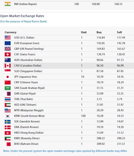 युरो पाउन्ड स्टिलिङको खरिददर १ सय ६४ रुपैयाँ ८३ पैसा र बिक्रिदर १ सय ६५ रुपैयाँ ६७ पैसा रुपैयाँ रहेको छ।