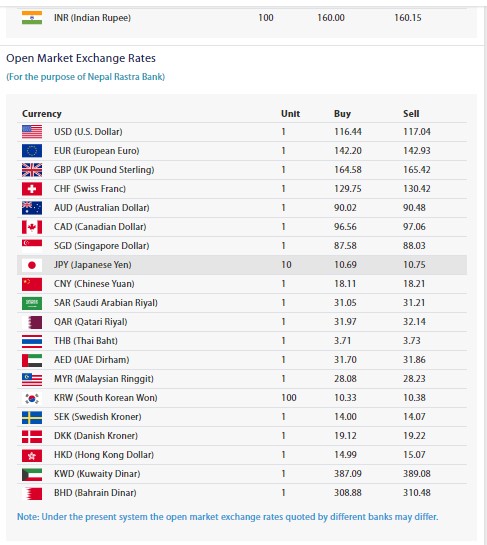युरो पाउन्ड स्टिलिङको खरिददर १ सय ६४ रुपैयाँ ५८ पैसा र बिक्रिदर १ सय ६५ रुपैयाँ ४२ पैसा रुपैयाँ रहेको छ।