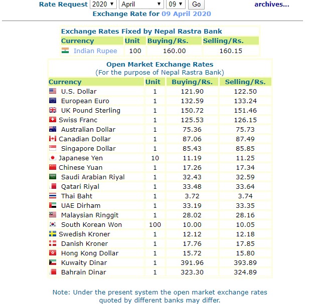 त्यस्तै, यूरोपियन यूरो एकको खरिददर १ सय ३२ रुपैयाँ ५९ पैसा तथा बिक्रिदर १ सय ३३ रुपैयाँ २४ पैसा रहेको छ। युके पाउण्ड स्ट्रलिङ एकको खरिददर १ सय ५० रुपैयाँ ७२ पैसा र बिक्रिदर १ सय ५१ पैयाँ ४६ पैसा रहेको छ।