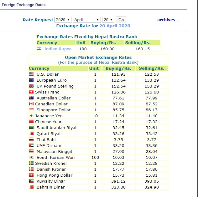 त्यस्तै, यूरोपियन यूरो एकको खरिददर १ सय ३२ रुपैयाँ ६४ पैसा तथा बिक्रिदर १ सय ३३ रुपैयाँ २९ पैसा रहेको छ। युके पाउण्ड स्ट्रलिङ एकको खरिददर १ सय ५२ रुपैयाँ ५४ पैसा र बिक्रिदर १ सय ५३ रुपैयाँ २९ पैसा रहेको छ।
