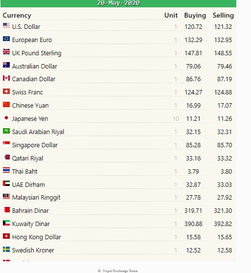 अन्य देशको विनिमयदर,