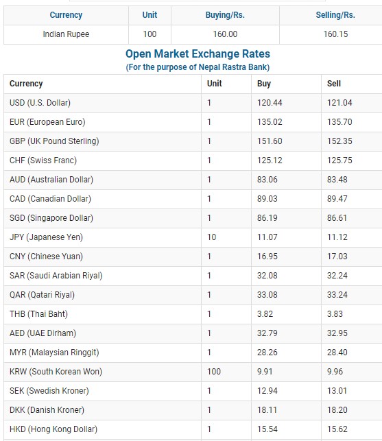 त्यस्तै, युरोपियन युरो एकको खरिददर १३५ रुपैयाँ ०२ पैसा र विक्रिदर १३५ रुपैयाँ ७० पैसा रहेको नेपाल राष्ट्र बैंकले जनाएको छ ।