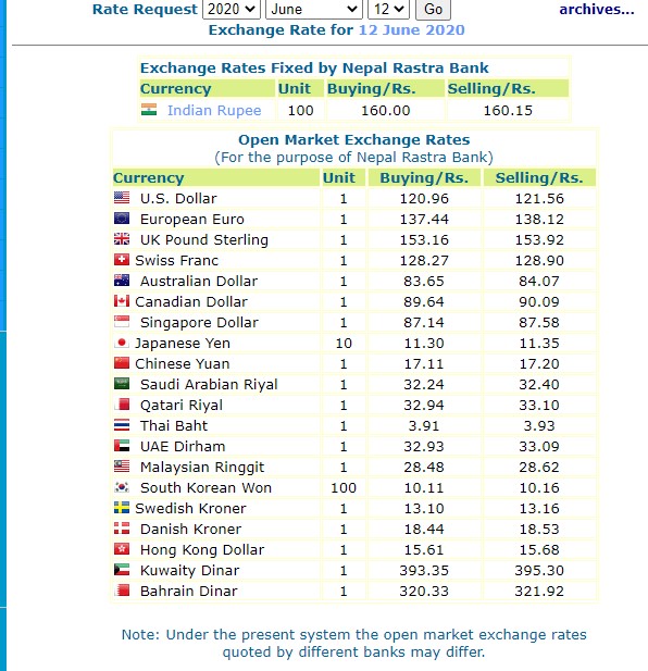 त्यस्तै, युरोपियन युरो एकको खरिददर १३७ रुपैयाँ ४४ पैसा र विक्रिदर १३८ रुपैयाँ १२ पैसा र युके पाउन्ड स्ट्रिलिङ एकको खरिददर १५३ रुपैयाँ १६ पैसा र बिक्रिदर १५३ रुपैयाँ ९२ पैसा रहेको नेपाल राष्ट्र बैंकले जनाएको छ ।