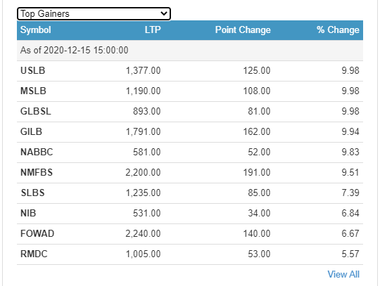 आज सबैभन्दा धेरै उन्नती सहकार्य लघुवित्त, महुली सामुदायिक लघुवित्त र गुराँस लघुवित्तका लगानीकर्ताले सबैभन्दा धेरै ९ दशमलव ९८ प्रतिशतका दरले कमाएका छन् । त्यस्तै, ग्लोबल आइएमई लघुवित्तका लगानीकर्ताले ९ दशमलव ९४ प्रतिशतका दरले कमाएका छन् ।