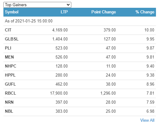 त्यस्तै, आज प्रभु लाइफ इन्स्योरेन्स कम्पनी, माउन्टेन हाइड्रोपावर, नेशनल हाइड्रोपावर कम्पनी, हिमालयन पावर कम्पनी, राष्ट्रिय बीमा कम्पनी, गुर्खाज फाइनान्स, नेपाल बैंक, नेपाल पुनर्बीमा लगायतका लगानीकर्ताले कमाएका छन् ।