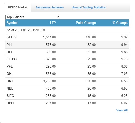 त्यस्तै, युनाईटेड फाइनान्स, एभरेष्ट इन्स्योरेन्सको प्रमोटर शेयर, पोखरा फाइनान्स, ओरियन्टल होटल, बोर्टलस नेपाल (तराई), नेपाल बैंक, श्री इन्भेष्टमेन्ट फाइनान्स र हिमालयन पावर पार्टनर कम्पनीका लगानीकर्ताले आज नाफा कमाएका छन् ।