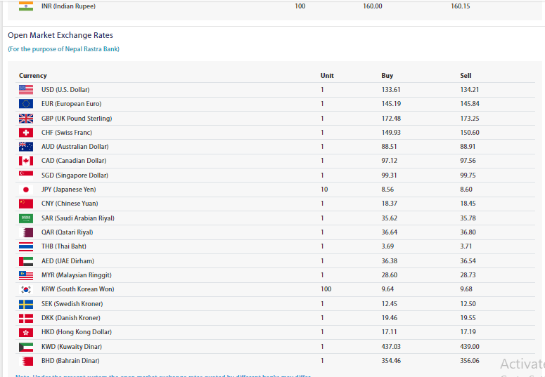 त्यसैगरी, अष्ट्रेलियन डलर एकको खरिददर ८८ रुपैयाँ ५१ पैसा र बिक्रीदर८८ रुपैयाँ ९१ पैसा रहेको छ । क्यानेडियन डलर एकको खरिददर ९७ रुपैयाँ १२ पैसा र बिक्रीदर ९७ रुपैयाँ ५६ पैसा रहेको छ । कतारी रियाल एकको खरिददर ३६ रुपैयाँ ६४ पैसा र बिक्रीदर ३६ रुपैयाँ ८० पैसा छ ।